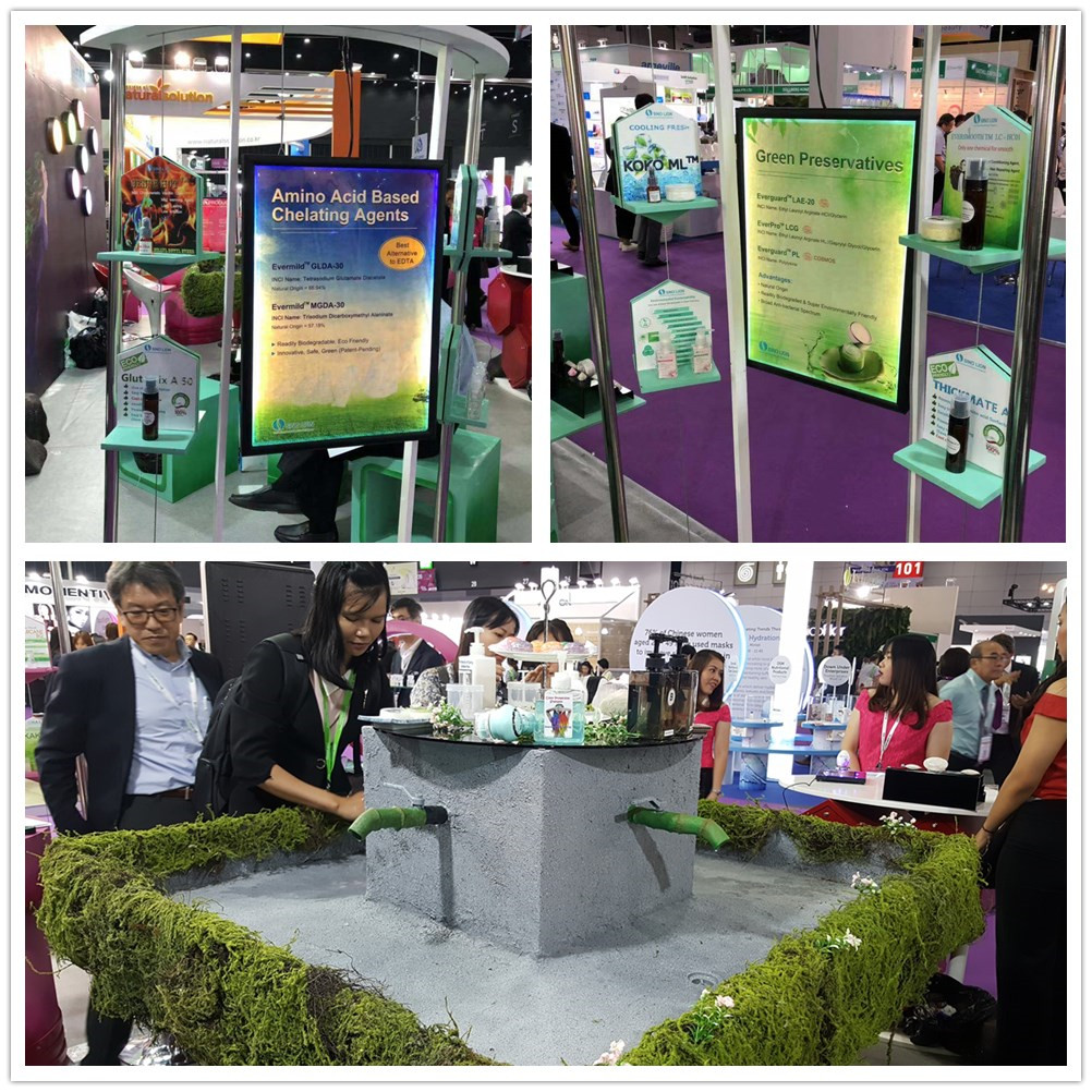 為期三天的展會上, 我司接待了來自中國,英國,美國,加拿大,新加坡,泰國,越南,印尼,馬來西亞,菲律賓,日本,澳大利亞,斯里蘭卡,印度、伊朗等近20多個國家的客戶,前來我們展臺詢問的產(chǎn)品主要集中在:Sino Lion綠色可降解螯合劑,天然來源的氨基酸類表面活性劑,液晶護發(fā)調理劑,天然認證的乳化劑,熱感和涼感的膚感劑等產(chǎn)品。此外,我司還為客戶和代理商提供了天然宣稱洗護配方的解決方案。