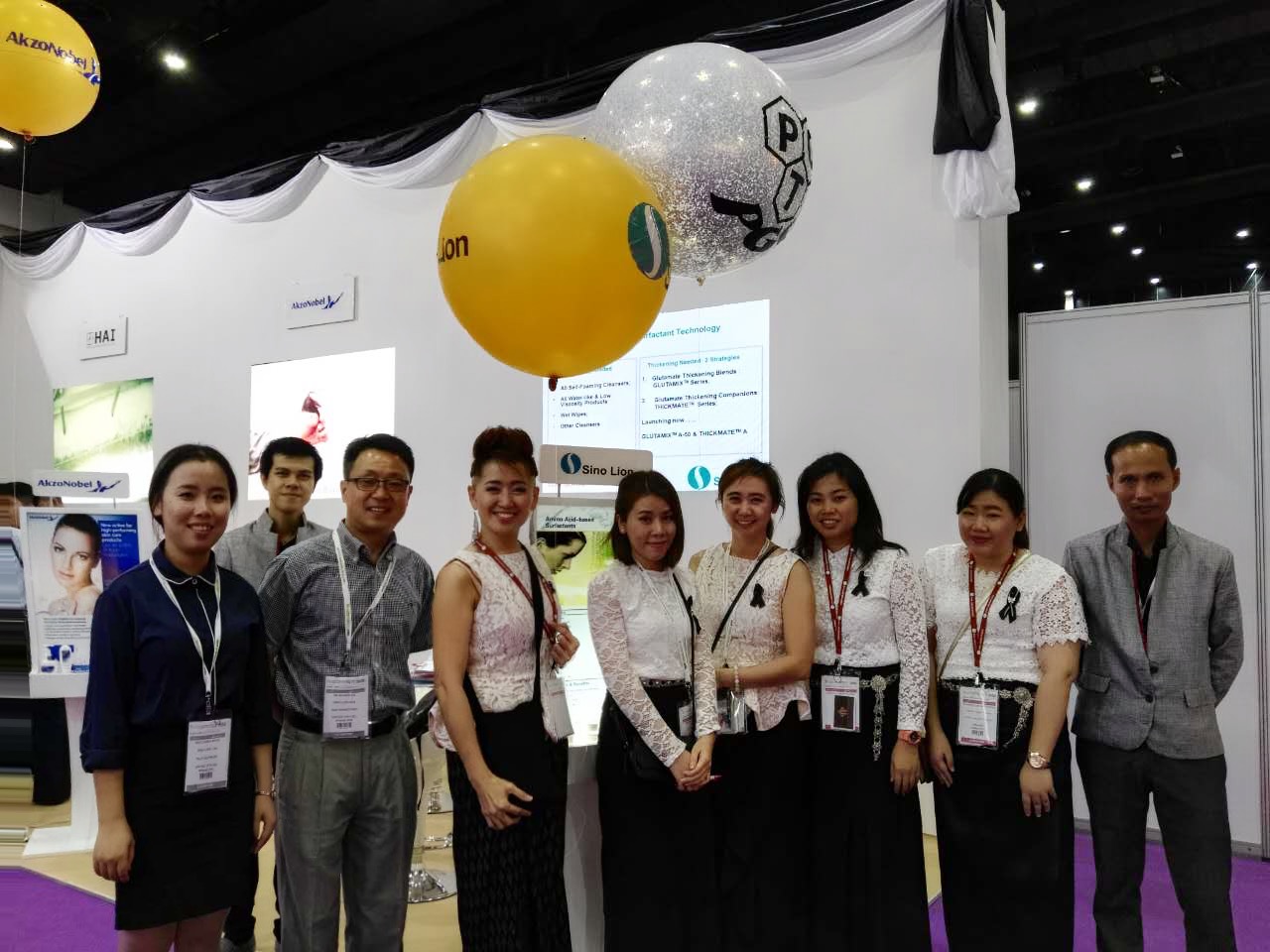 展會期間,前來我們展臺咨詢的客流密集,主要來自:泰國、印度尼西亞、韓國、菲律賓、越南、新加坡、巴基斯坦、孟加拉國、印度、日本、澳大利亞、新西蘭、英國、中國等至少14個(gè)國家,其中不乏有慕名從其他地區(qū)特意趕來的客戶,還有其他地區(qū)代理商介紹前來的客戶。他們的關(guān)注點(diǎn)也是主要集中在SINO LION的Eversoft氨基酸表面活性劑系列、Eversmooth液晶護(hù)發(fā)調(diào)理劑系列、KOKOTM/SenseHot 涼/熱感劑系列這三大類產(chǎn)品,我們也對這三類產(chǎn)品的性能特點(diǎn)、配方應(yīng)用、相關(guān)認(rèn)證以及自增稠技術(shù)等向他們做了比較詳細(xì)的介紹。