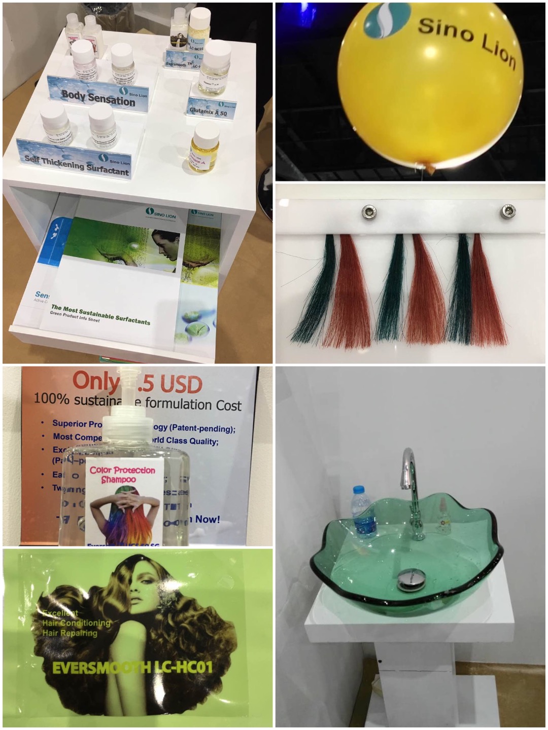 我司通過和泰國代理商PGT的通力合作,在本次展會上對產(chǎn)品的宣傳達(dá)到了非常好的效果。PGT為配合我司氨基酸表活和液晶護(hù)發(fā)素調(diào)理劑的推廣,特意在展館安排了清洗池,配合推出了固色香波和頭發(fā)模板。