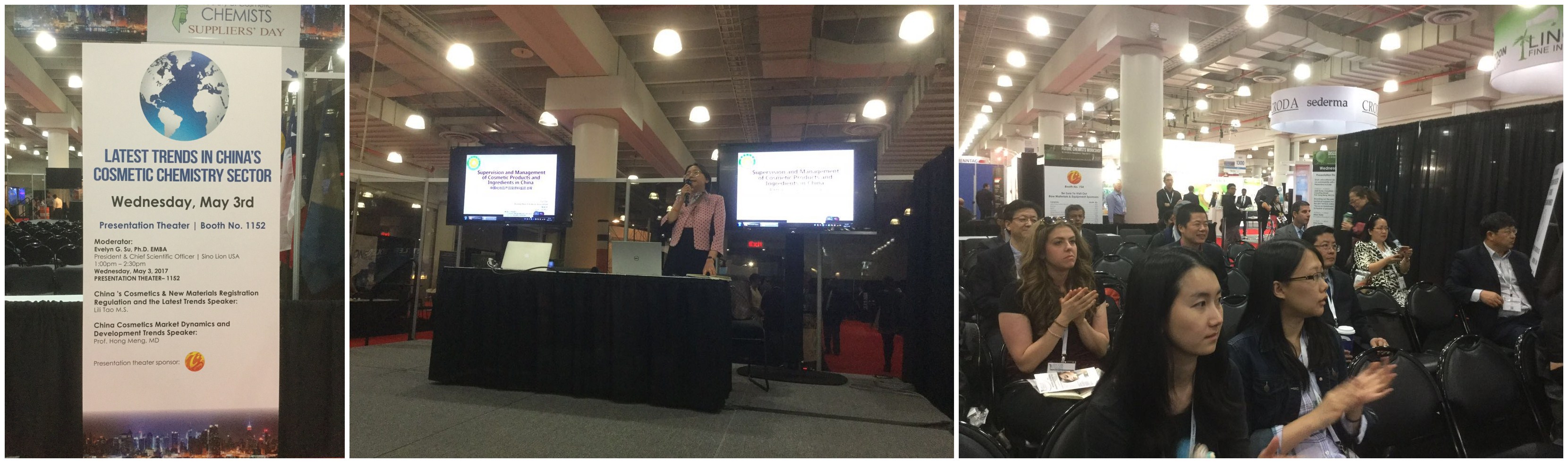 5月3日下午,蘇博士作為 “中國(guó)化妝品化學(xué)的發(fā)展趨勢(shì)”論壇的會(huì)議主持,參加了此次論壇。此次論壇,主要為對(duì)中國(guó)市場(chǎng)有興趣的參會(huì)者分享了中國(guó)化妝品領(lǐng)域的市場(chǎng)動(dòng)態(tài)、發(fā)展趨勢(shì),以及原料與成分的法律法規(guī)及監(jiān)管。另外,蘇博士還協(xié)助組織了中國(guó)民族化妝品企業(yè)在美專(zhuān)業(yè)人士的聚會(huì),為推進(jìn)中國(guó)品牌走向全球盡心出力。